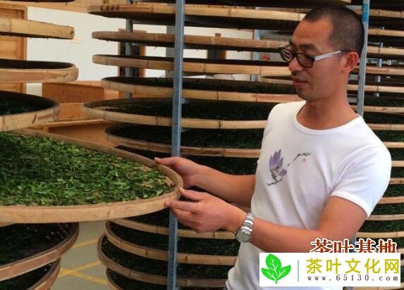 萎凋以室内自然萎凋较佳,有利于提高萎凋质量,但限制条件较多,目前大多回收萎凋槽萎凋。萎凋室保持通风良好。槽内温度一般控制在30℃~35℃阁下,具体温度和风量的把握依据鲜叶含水量而定,一般原则"先高后低"。萎凋摊叶厚度一般为10-15cm,每隔20-30分钟翻叶一次,以得到茶叶萎凋均匀一致。一般萎凋时间为4-5小时,萎凋叶叶质柔软手捏成团。松手不易弹散,嫩梗折之不绝,叶面失去光芒,色暗绿,青草气大部门消失,略有清香,减重率达30%~40%,则萎凋适率。